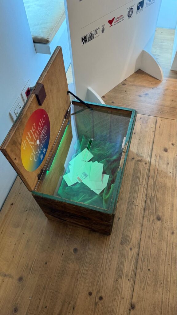 Non seulement le jury professionnel peut désigner leslauréats, mais il existe également un prix du public. Lespersonnes qui visitent le musée pendant la Venice GlassWeek peuvent voter pour leurs perles préférées. Descentaines de personnes le font chaque année.